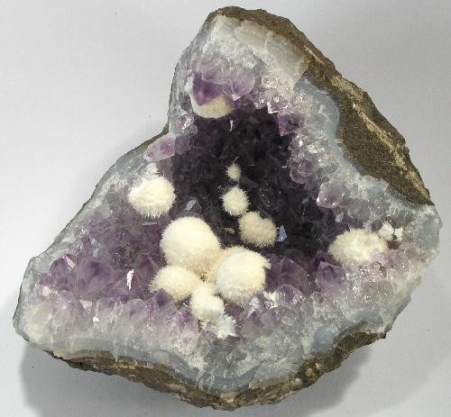 Mordenite on Amethyst. I know nothing about mordenite but it looks freakin’ cool!