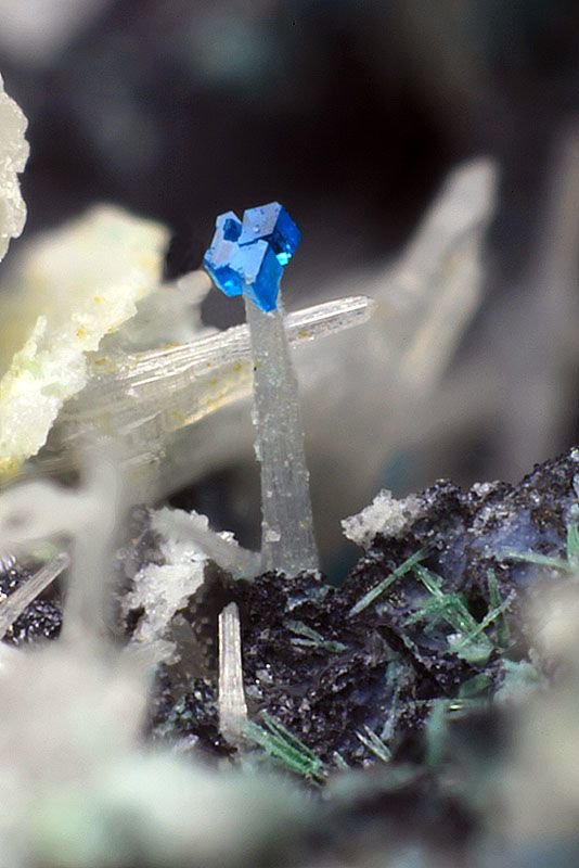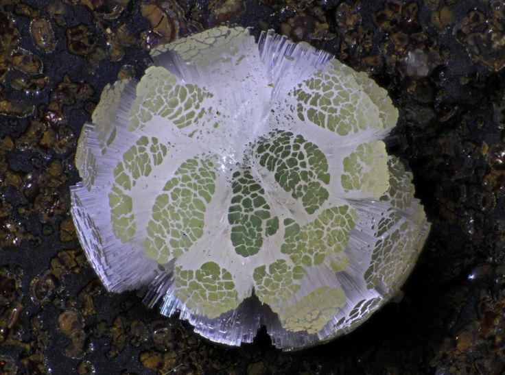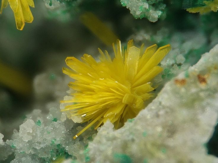 This is apparently a micro version of crystal porn this month. This is an itty bitty mineral on top of quartz and some unknown green stuff. I love the colouring the star-like shape of the Kasolite. Could not find qualities of it via google which tells me its uncommon and tiny. 🙂